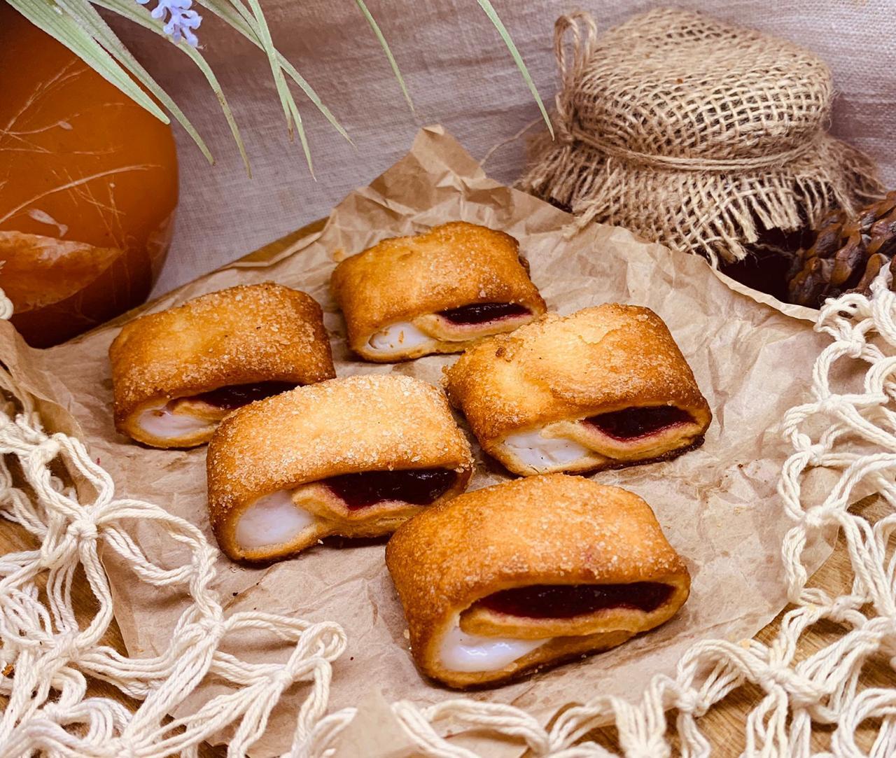 Рулет из песочно-дрожжевого теста с начинками со вкусом творога и смородины
