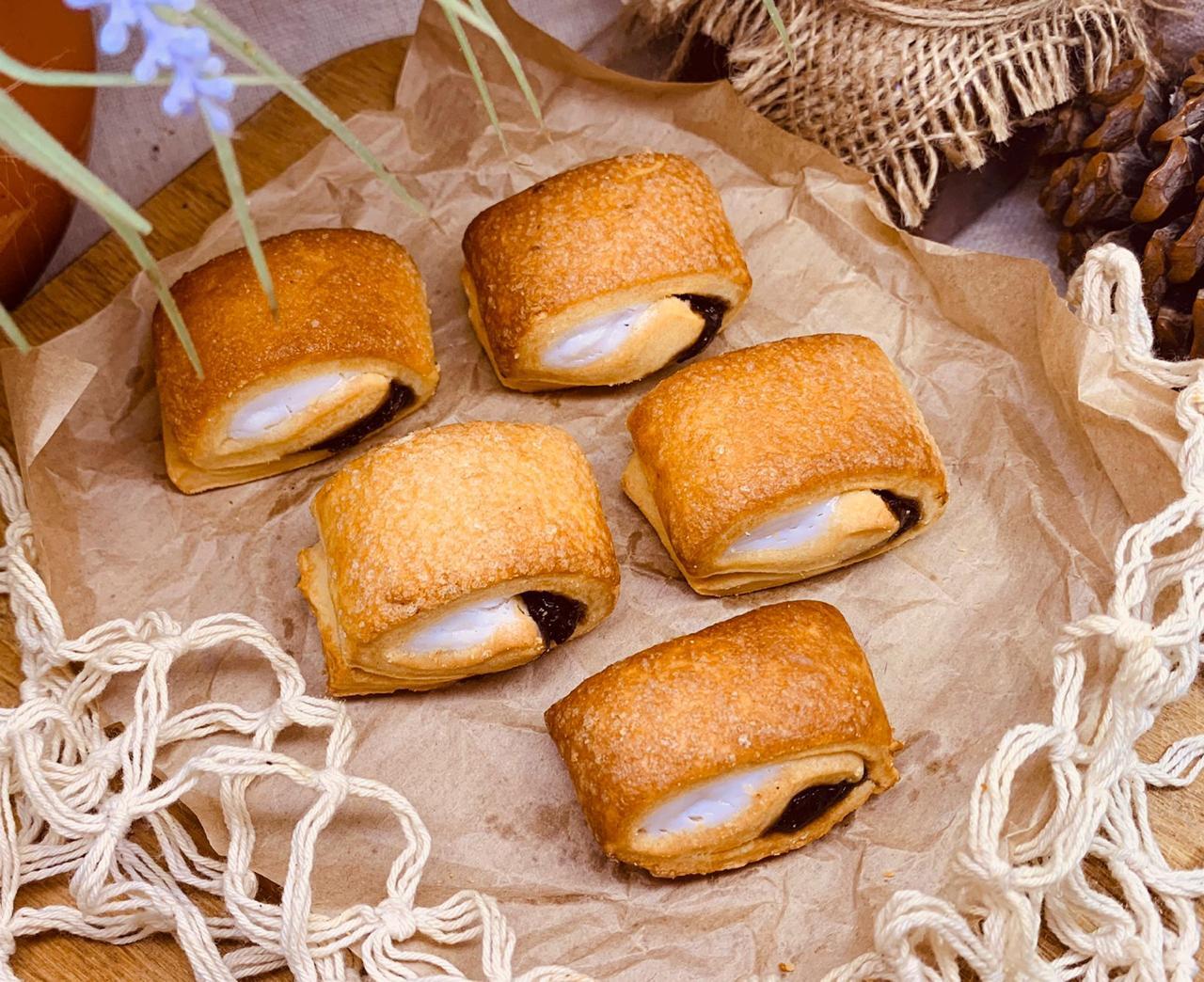 Рулет из песочно-дрожжевого теста с нежными сливками и насыщенным шоколадом.