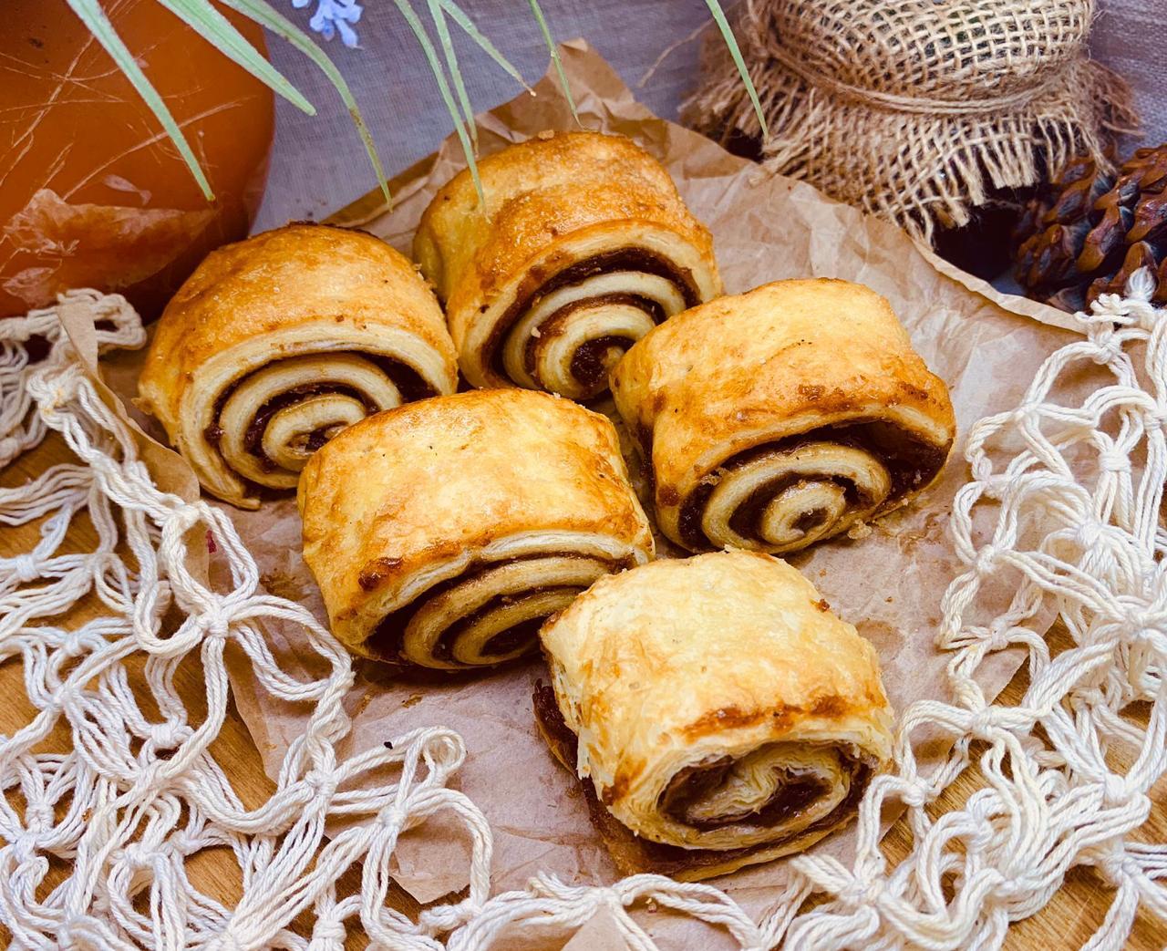 Рулет из слоеного теста с черемуховой начинкой.